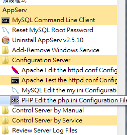 第一項應該要改得是php.ini,直接從程式集/所有程式/AppServ/Configuration Server/PHP Edit the php.ini Configuration File去做更改就好了