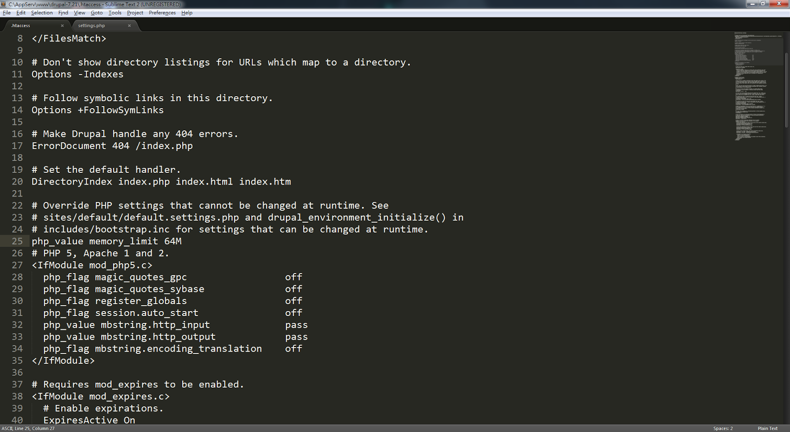 先將下載的Drupal 7.21解壓縮,並且放到AppServ 2.5.10安裝路徑底下的www資料夾裡